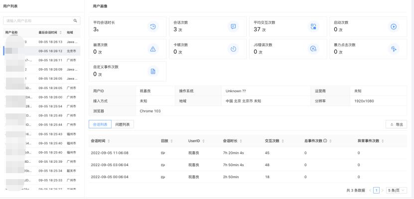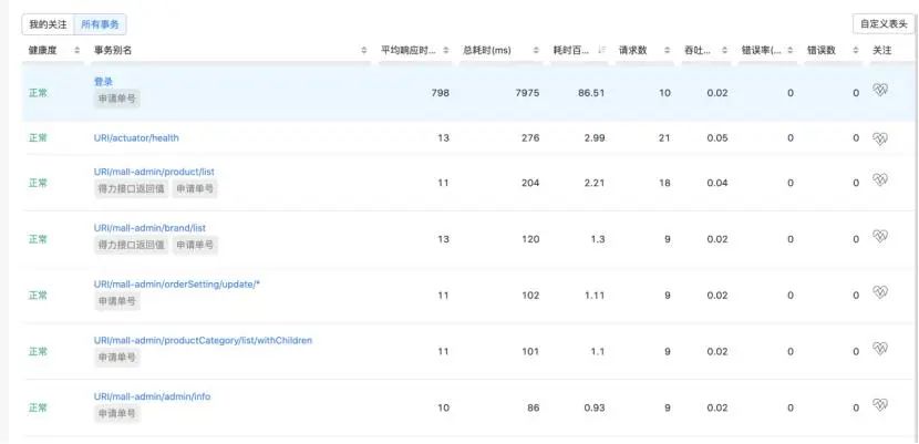 用戶訪問軌跡,可以看到每個用戶訪問系統(tǒng)的全過程以及是否發(fā)現(xiàn)性能問題,每一步都可以追蹤。