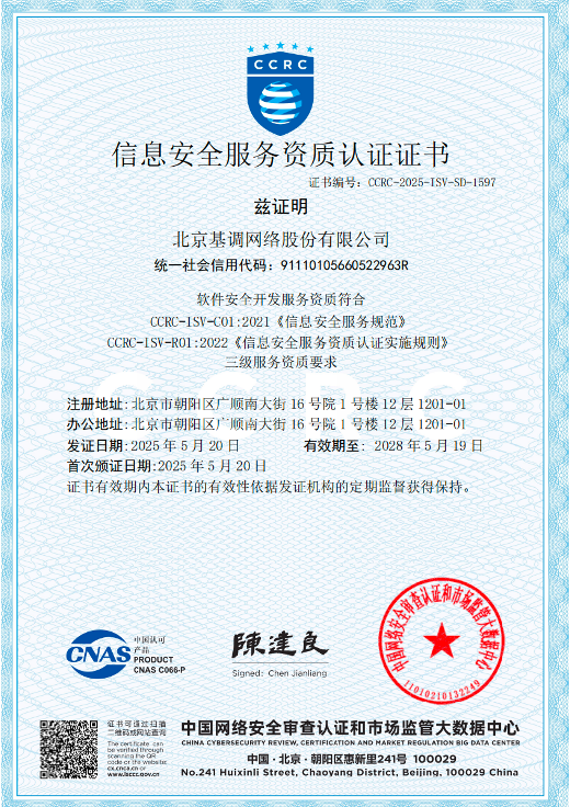 此前,基調(diào)聽云已通過ISO/IEC 27001信息安全管理體系認證、等保三級認證、可信軟件評估、GB/T 38636國密協(xié)議適配等一系列高標準測評,構(gòu)建起完善的合規(guī)防線。