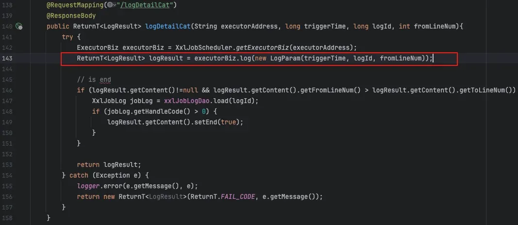 通過(guò)觀察 XxlJobScheduler.java,發(fā)現(xiàn)傳入的 executorAddress 沒有經(jīng)過(guò)特別的安全校驗(yàn),返回了接口類 executorBiz。