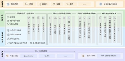Harmony OS能夠?縫銜接 Android 應(yīng)?得益于【內(nèi)核?系統(tǒng)】的多核設(shè)計,?持針對不同資源受限設(shè)備選?適合的OS內(nèi)核。內(nèi)核抽象層(Linux Kenrnel(Android )、KAL、LiteOS)通過屏蔽多內(nèi)核差異,對上層提供基礎(chǔ)的內(nèi)核能?,包括進程/線程管理、內(nèi)存管理、?件系統(tǒng)、?絡(luò)管理和外設(shè)管理等。