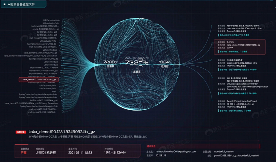 AI驅(qū)動(dòng)智能分析:通過異常檢測(cè)、趨勢(shì)預(yù)測(cè)、因果推理等智能算法,實(shí)現(xiàn)從“事后告警”到“事前預(yù)判”,大幅縮短 MTTD(平均檢測(cè)時(shí)間)與 MTTR(平均恢復(fù)時(shí)間)。