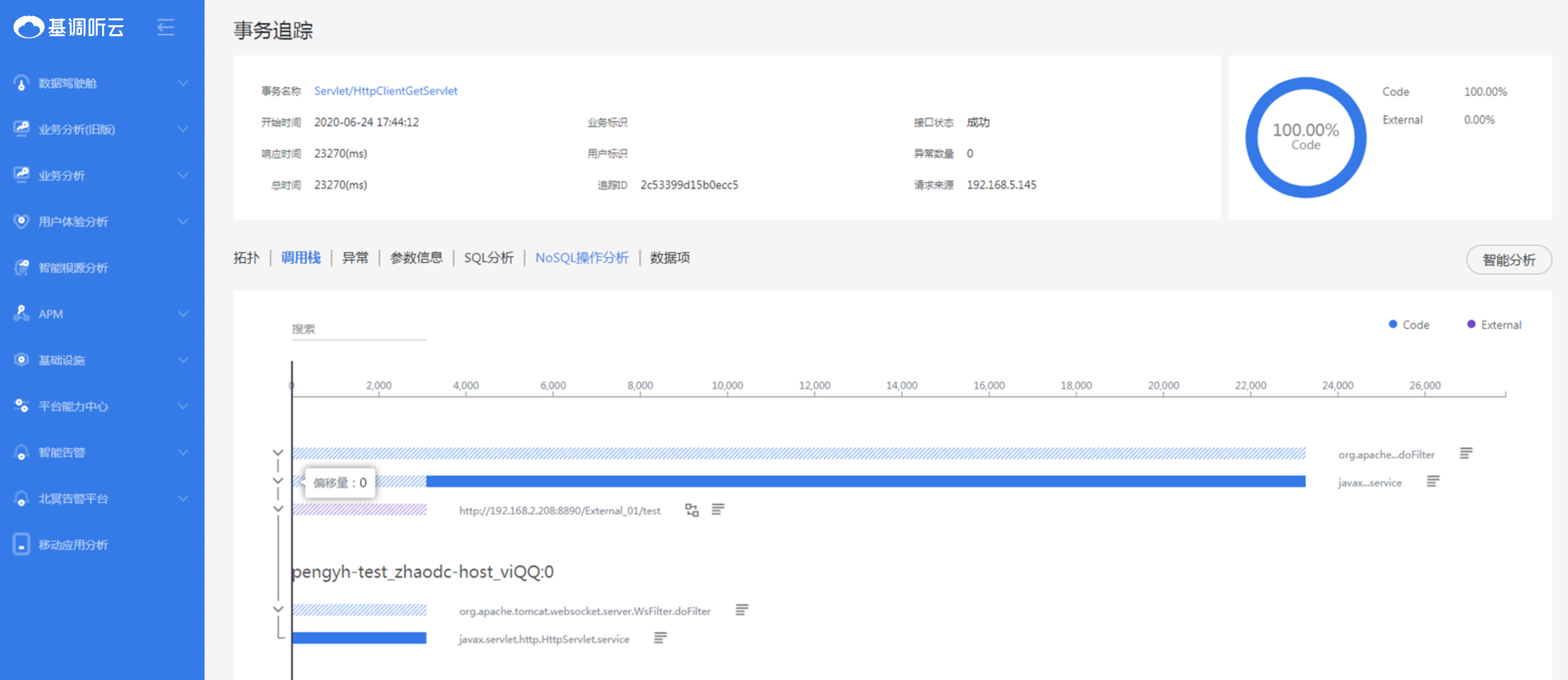 基調(diào)聽云一體化監(jiān)控解決方案從用戶體驗(yàn)出發(fā),對(duì)用戶操作過程中的各項(xiàng)業(yè)務(wù)進(jìn)行監(jiān)控分析,對(duì)性能數(shù)據(jù)和業(yè)務(wù)數(shù)據(jù)進(jìn)行采集分析,保證對(duì)用戶的每一項(xiàng)操作進(jìn)行360度查看分析,了解用戶行為,打破數(shù)據(jù)孤島,優(yōu)化用戶體驗(yàn)。