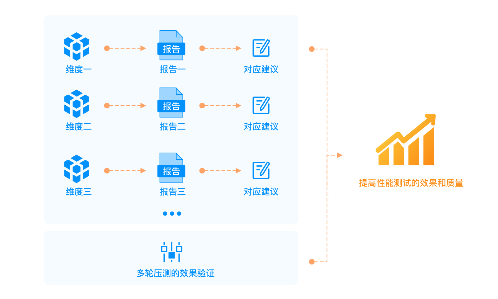 基調(diào)聽云性能測試專家會(huì)從多個(gè)維度對(duì)性能測試數(shù)據(jù)進(jìn)行分析,并形成相應(yīng)的分析報(bào)告,給出合理優(yōu)化建議,配合多輪壓測的整改效果驗(yàn)證,提高性能測試的效果與質(zhì)量。