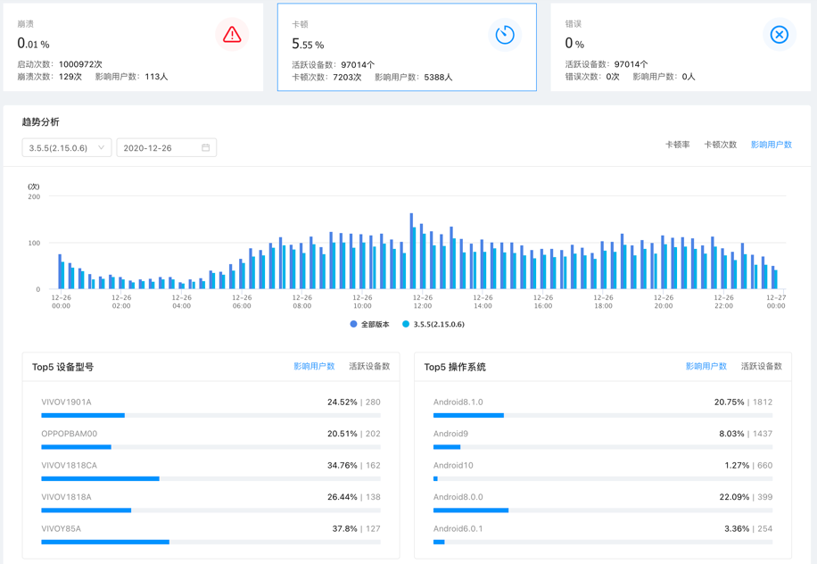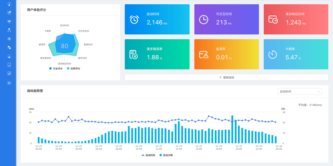 分析真實(shí)用戶(hù)使用過(guò)程,覆蓋應(yīng)用全生命周期(包含:應(yīng)用啟動(dòng)、頁(yè)面展現(xiàn)、用戶(hù)操作三大核心場(chǎng)景),助力業(yè)務(wù)人員快速準(zhǔn)確了解用戶(hù)體驗(yàn)。